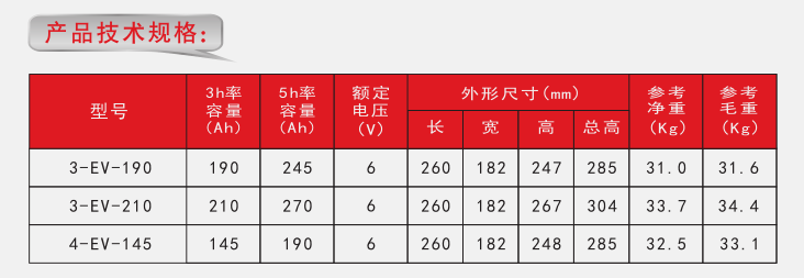 額定電壓:6V 容量:190AH-245AH